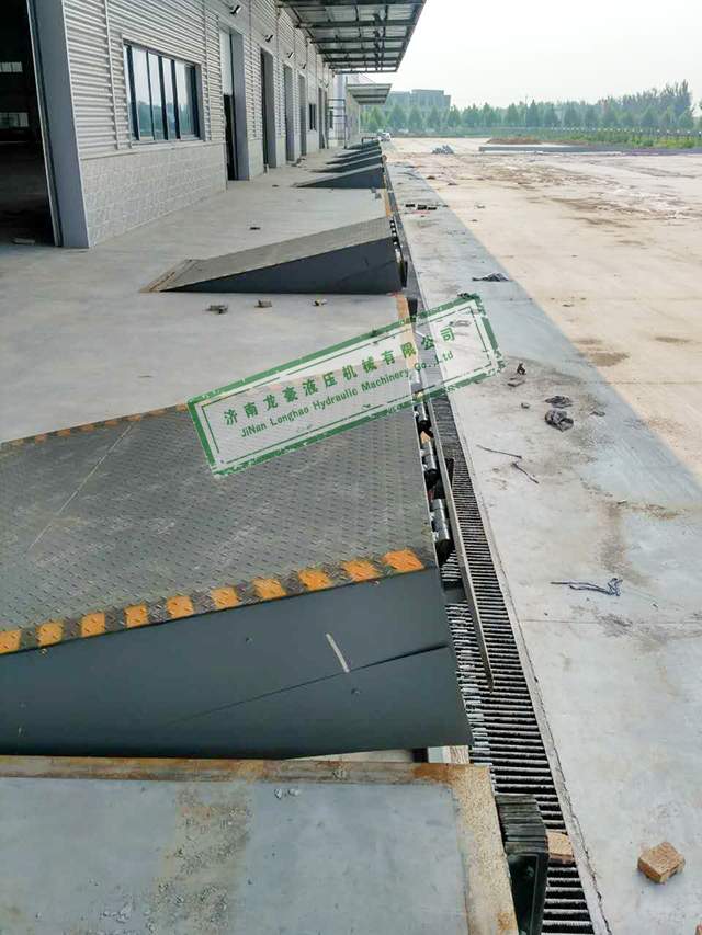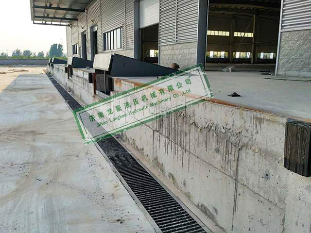 淄博某食品加工企業(yè)倉(cāng)庫(kù)多臺(tái)固定登車橋安裝完畢現(xiàn)場(chǎng)照片