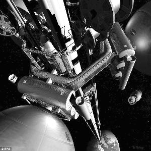 大林組計(jì)劃大約2025年開始修建天梯,先發(fā)射火箭將兩卷用碳納米管和其他材料制成的纜索運(yùn)至距地大約300千米的位置;再用宇宙飛船解開纜索,朝地面放去;與此同時(shí),飛船繼續(xù)飛升,攀至9.6萬千米高處。這一高度大約是地球與月球距離的四分之一。