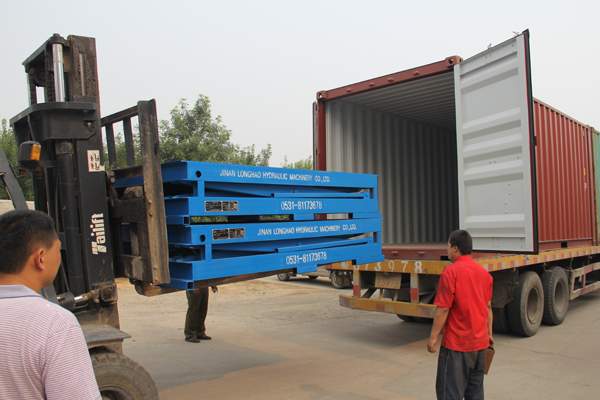 濟(jì)南龍豪出口新加坡剪叉式升降機(jī) 載重2噸 升高1.4米 臺(tái)面尺寸2.0米*2.5米 第二批4臺(tái)交付!