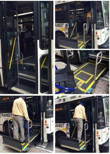 比如在公交車車門處,還有這么一個(gè)為殘疾人設(shè)置的功能,在臺(tái)階那里藏有一塊可伸縮和升降的平臺(tái),殘疾人只要站上去就把殘疾人和殘疾車直接升降運(yùn)送到公交車的車廂里面。很人性化。