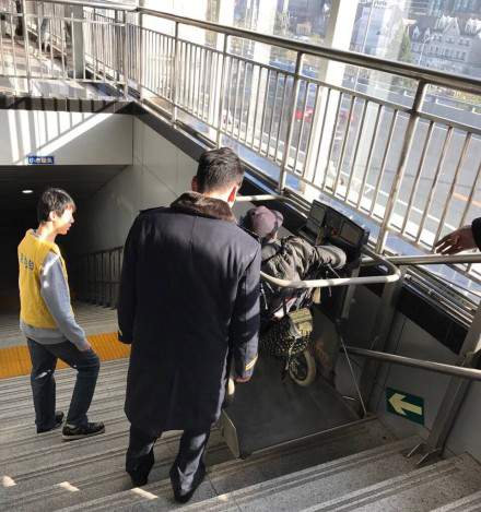 大連地鐵站殘疾人無障礙升降平臺、樓梯升降機、斜掛式輪椅升降平臺、主要為使用輪椅者提供上下樓梯的服務,其一般結構合理使用安全。為了防止平臺傾翻,使用二根導軌。斜掛式輪椅升降平臺主要由工作平臺、支承框架、保護護欄組成,主體是濟鋼結構。工作平臺是升降機的工作部分,表面復有防滑濟鋼產(chǎn)材料。平臺的三個外向面都安裝有安全護板,當平臺運動受阻時,能使升降機停止運動。平臺在不使用時可以向上折疊,以減少占用空間。