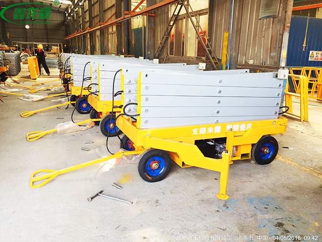 移動(dòng)剪叉式升降平臺(tái)主要技術(shù)特點(diǎn):臺(tái)面鋼板折彎、底架及剪叉結(jié)構(gòu)山鋼定做高強(qiáng)度矩形管材; 標(biāo)準(zhǔn)冷彎槽做道軌,使用尼龍滑塊做導(dǎo)軌輪,接觸面大,升降平穩(wěn),晃動(dòng)小;液壓油缸 內(nèi)置防爆閥(防止油管斷裂,平臺(tái)失速下降),采用進(jìn)口密封圈,經(jīng)久耐用,不泄露;雙層鋼網(wǎng)高壓油管;升降機(jī)專用液壓泵站,加裝應(yīng)急下降閥,平臺(tái)斷電可手動(dòng)控制 下降,內(nèi)置溢流閥,可防止上行運(yùn)動(dòng)時(shí)系統(tǒng)壓力過高,起到超載保護(hù)功能;充氣橡膠輪胎; 電路電器、接觸器羅列連接,加裝熱過載保護(hù),缺相保護(hù)等安全保護(hù)功能;電動(dòng)上、下電動(dòng)控制,控制按鈕盒加裝急停按鈕,以保障財(cái)產(chǎn)及人身安全,各操作部分使用24V安全控制電壓;軸銷圓鋼配做,調(diào)質(zhì)處理;拋丸、噴砂 除銹處理,除去鋼結(jié)構(gòu)構(gòu)件表面的銹蝕及焊接飛濺,能使鋼構(gòu)件表面產(chǎn)生一定程度的凹凸不平的效果,增大粉末的附著力;使用靜電粉末噴涂;涂層外觀質(zhì)量?jī)?yōu)異,附著力及機(jī)械強(qiáng)度強(qiáng),色澤亮度高,經(jīng)久不褪色。